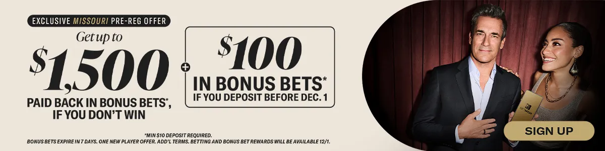 FanDuel Missouri Offer: $100 in bonus bets if you sign up before 12/1. Place a $5+ bet after 12/1 and get an EXTRA $300 in bonus bets instantly.